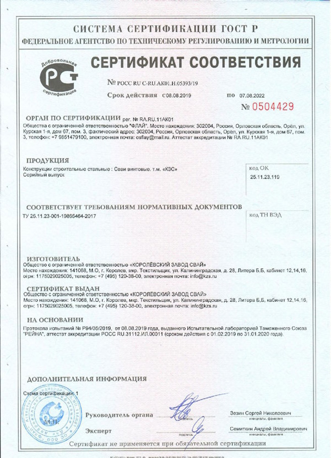 Добровольная сертификация винтовых свай
